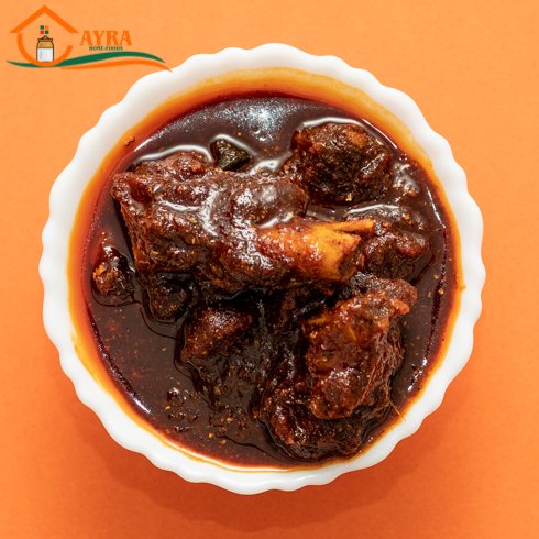 Tender mutton chunks slow-cooked and pickled in a flavorful Andhra spice mix. A royal treat for meat lovers.