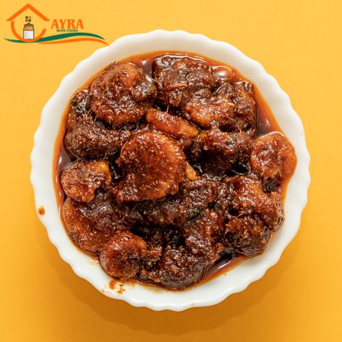 Juicy prawns cooked in tamarind and garlic spice base for a mouthwatering seafood pickle.
